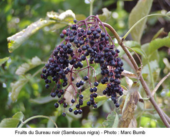 Le Sureau noir est assez riche en provitamine A, en Vitamine C en Vitamine PP et en Potassium (K) mais aussi en acide malique et tartrique.